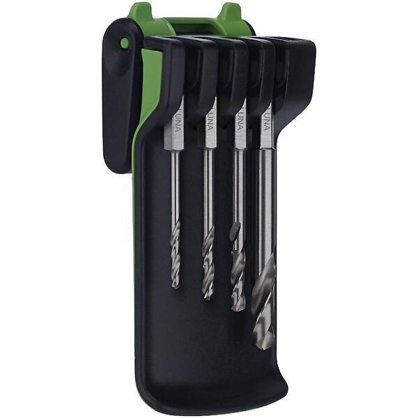 4 delars HSS borrsats i Luna GO verktygshållarsystem med bältesclips. Verktygshållaren har plats för ett toppmonterade och fyra hängande verktyg i ett unikt upphängningssystem med magnetlåsning. För en snabb smidig hantering och bra förvaring av verktyg med 1/4"-sexkantsfäste. Verktygshållaren är ledad och kan enkelt monteras och tas av från bältesclipset för bättre ergonomi och säkrare användning. Fungerar även ihop med slagskruvdragare. Innehåll: 3, 4, 5 och 8 mm.